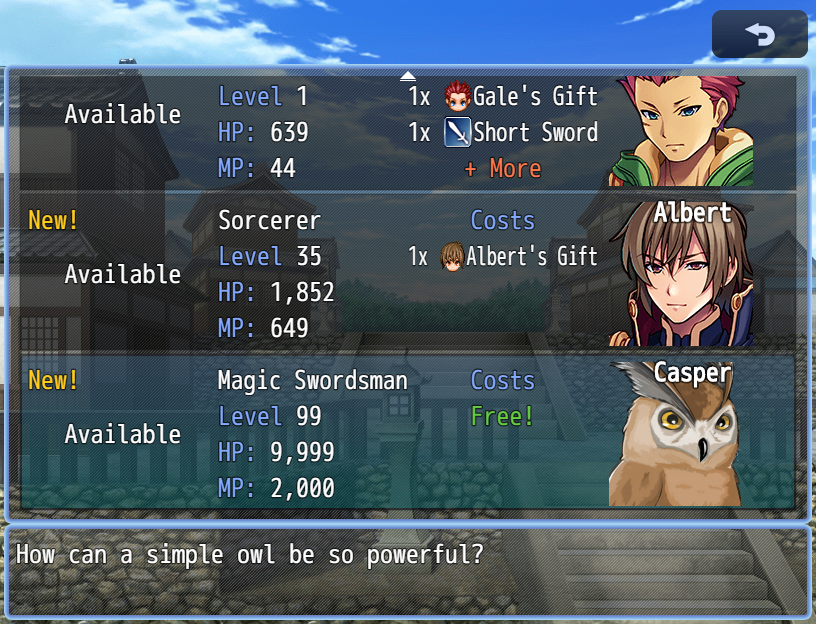 This update also overhauled how the info in the actor select window is drawn. You can now change the display order of the text in the window in a similar way to how you have control over text elsewhere, and you can also control if the New! marker text is drawn on the left or right. See below image for one customization of the select window: